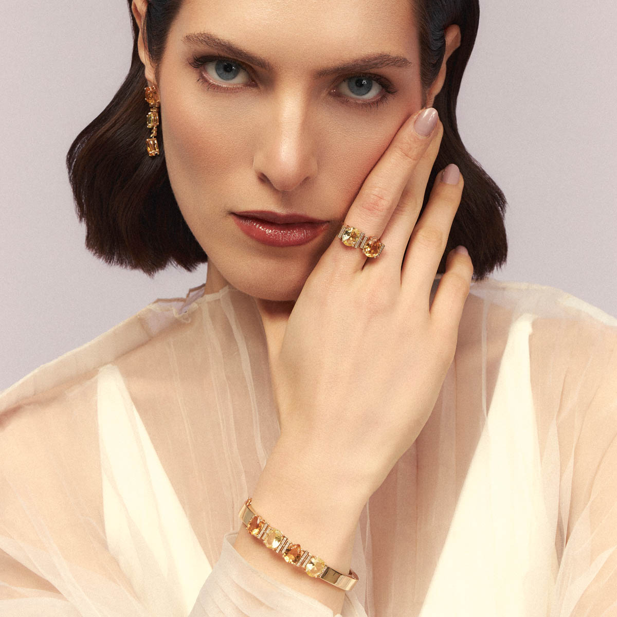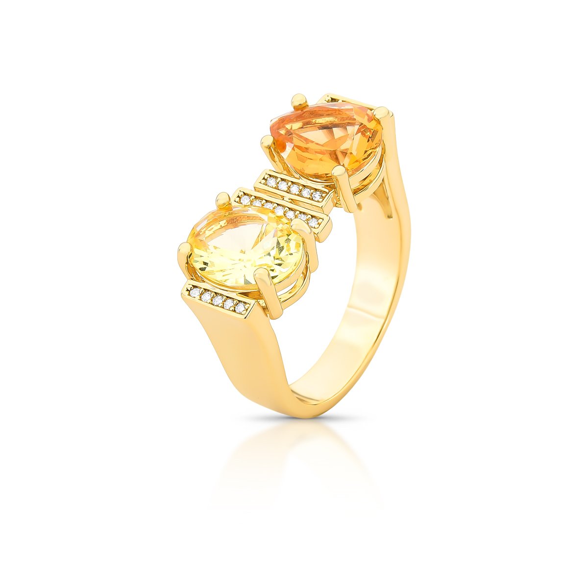 Anel Com Cristais 2 Tons E Linhas Cravejadas Zircônia