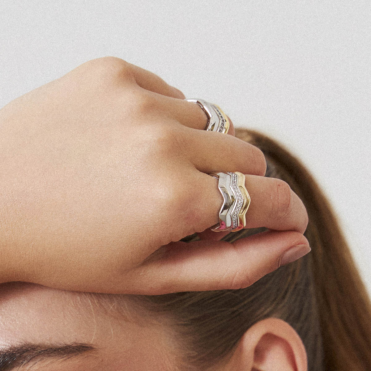 Anel Geométrico Trabalhado Cravejado Zircônias Banho 2 Tons