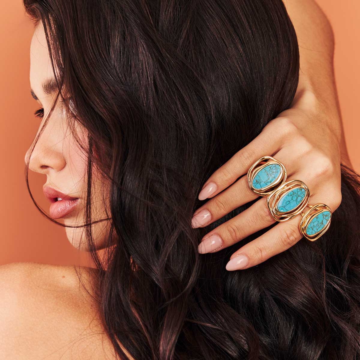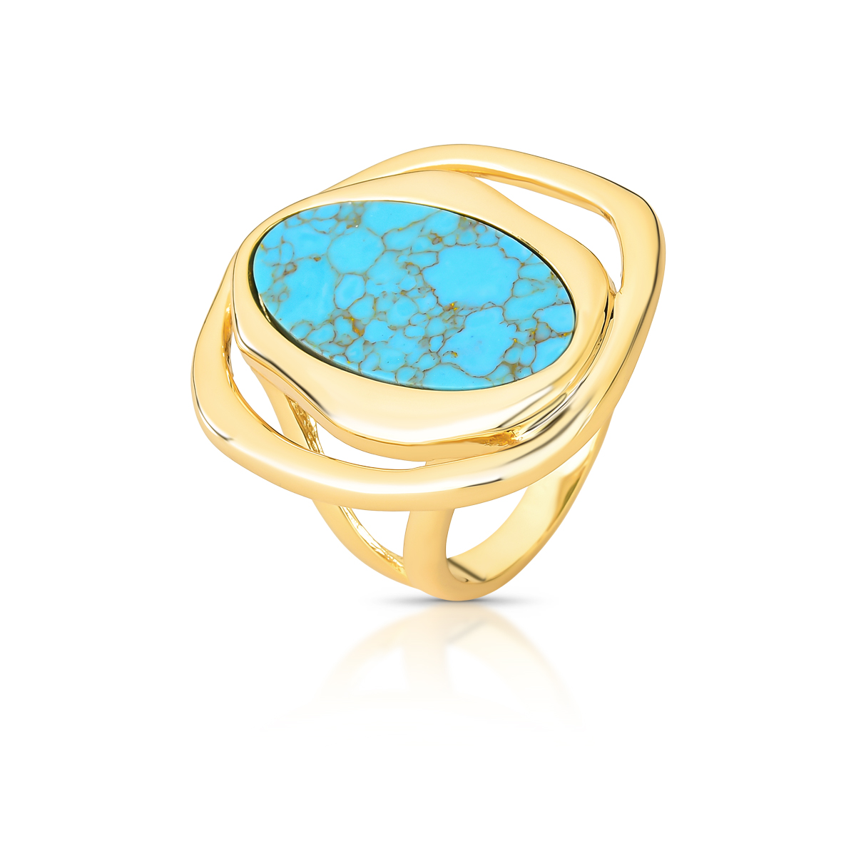 Anel Grande Pedra Turquesa Oval Curvo Vazado