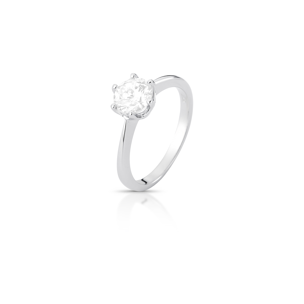 Anel Solitário Com Cristal Redondo Em Prata 925
