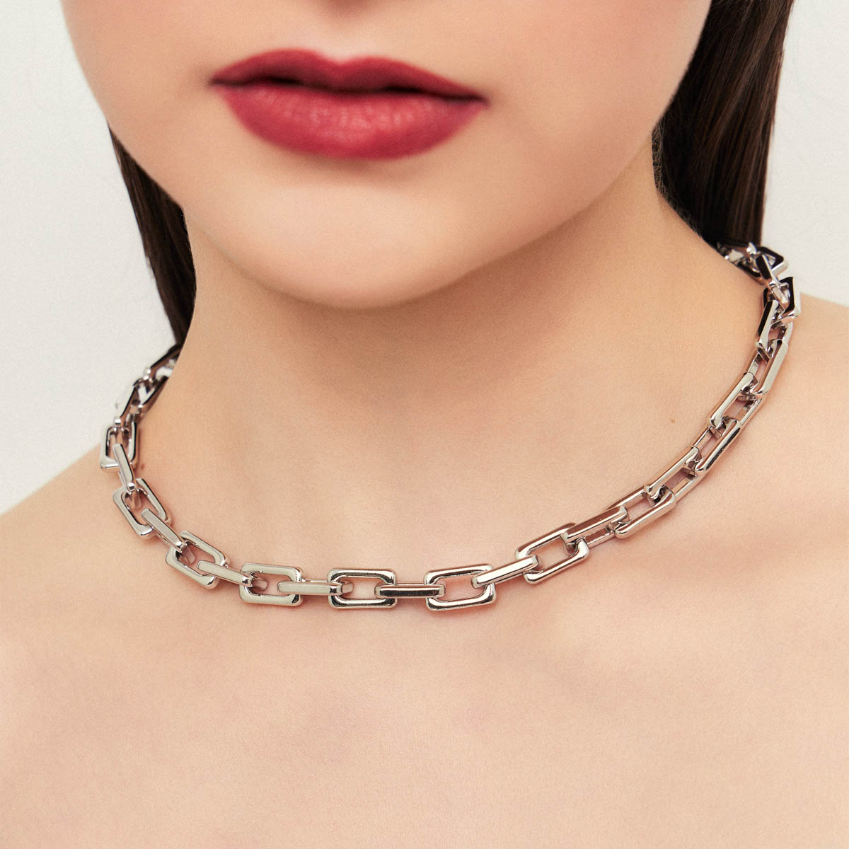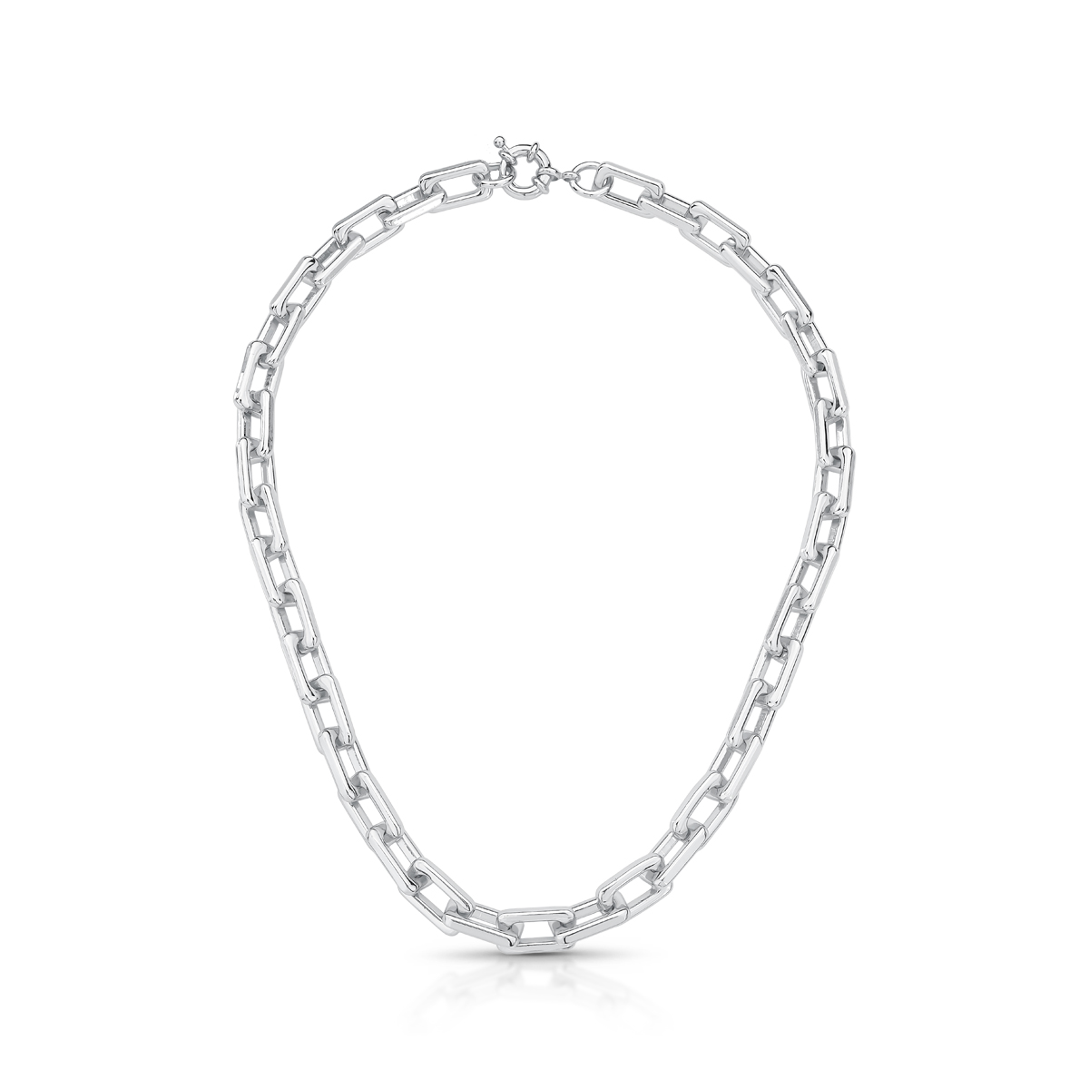 Colar Com Elos Retangulares Lisos Ródio Branco