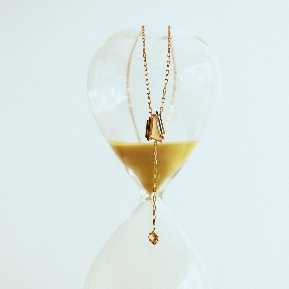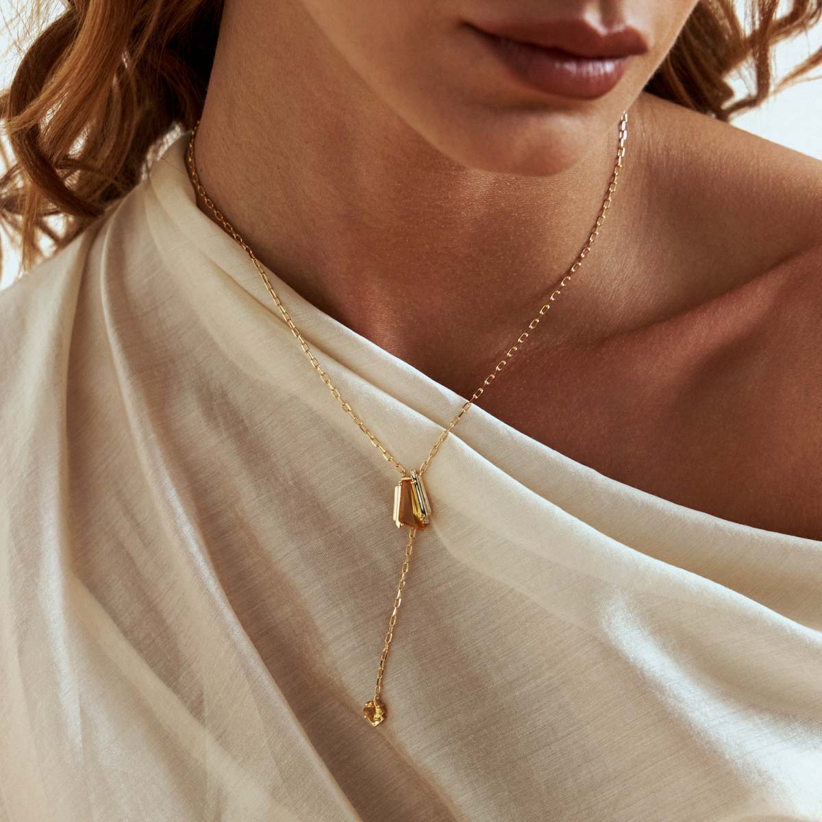 Colar Gravata Cristais Amarelos Pendulo Banho Ouro 18K